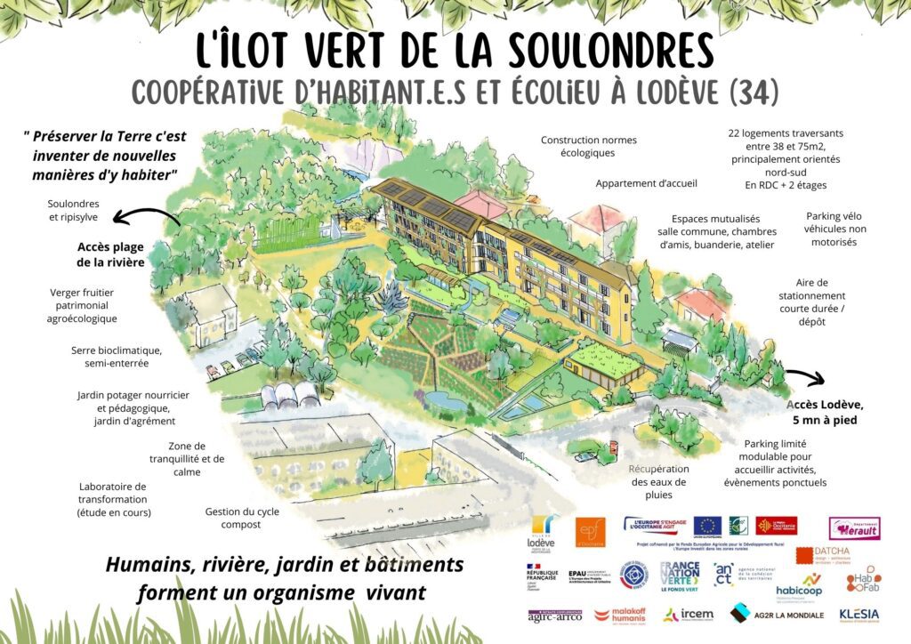 Coopérative d’habitants avec 22 logements du T1 au T4 et des espaces mutualisés sur un magnifique terrain de 6000 m2 avec verger, potager et ripysylve le long de la Soulondres