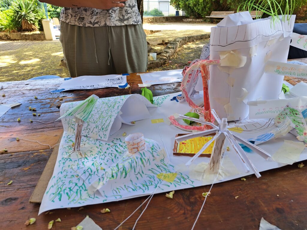 Maintenant, j’arrose notre jardin. J’allume l’éolienne qui active la pompe à eaux grises. Je cueille des framboises en regardant les enfants. Ils font du toboggan depuis le toit végétalisé. Nous l’avons aménagé à partir de la terre du terrain.