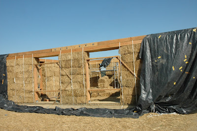 - ces logements en ossature bois, murs paille, enduits terre ou chaux s’articulent autour d’une belle salle commune de 80 m2.
